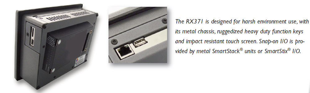 The RX371 is unique as it has been optimized for enhanced temperature, environmental, shock and vibration protection. Circuit boards are conformally coated, adding a layer of protection. Plus, the touch screen is constructed of Lexan® and is impact resistant. All function keys have been designed for 30 Million + operations with outstanding tactile feel. Finally, the RX371 incorporates a metal chassis designed for rigorous use.